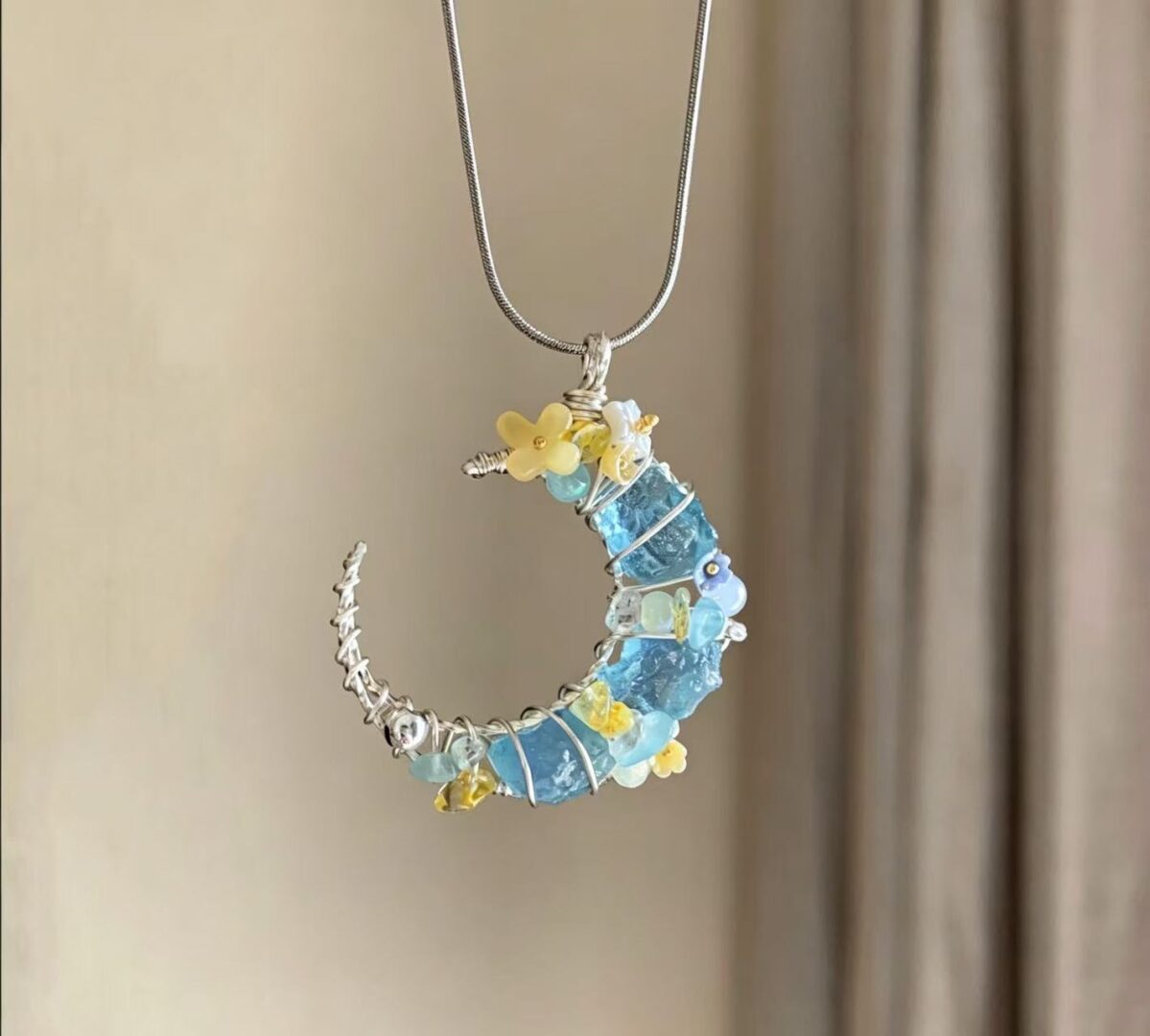 Aquamarine Crescent Moon Pendant: The Water Element Amulet For Communication, Protection & Flow