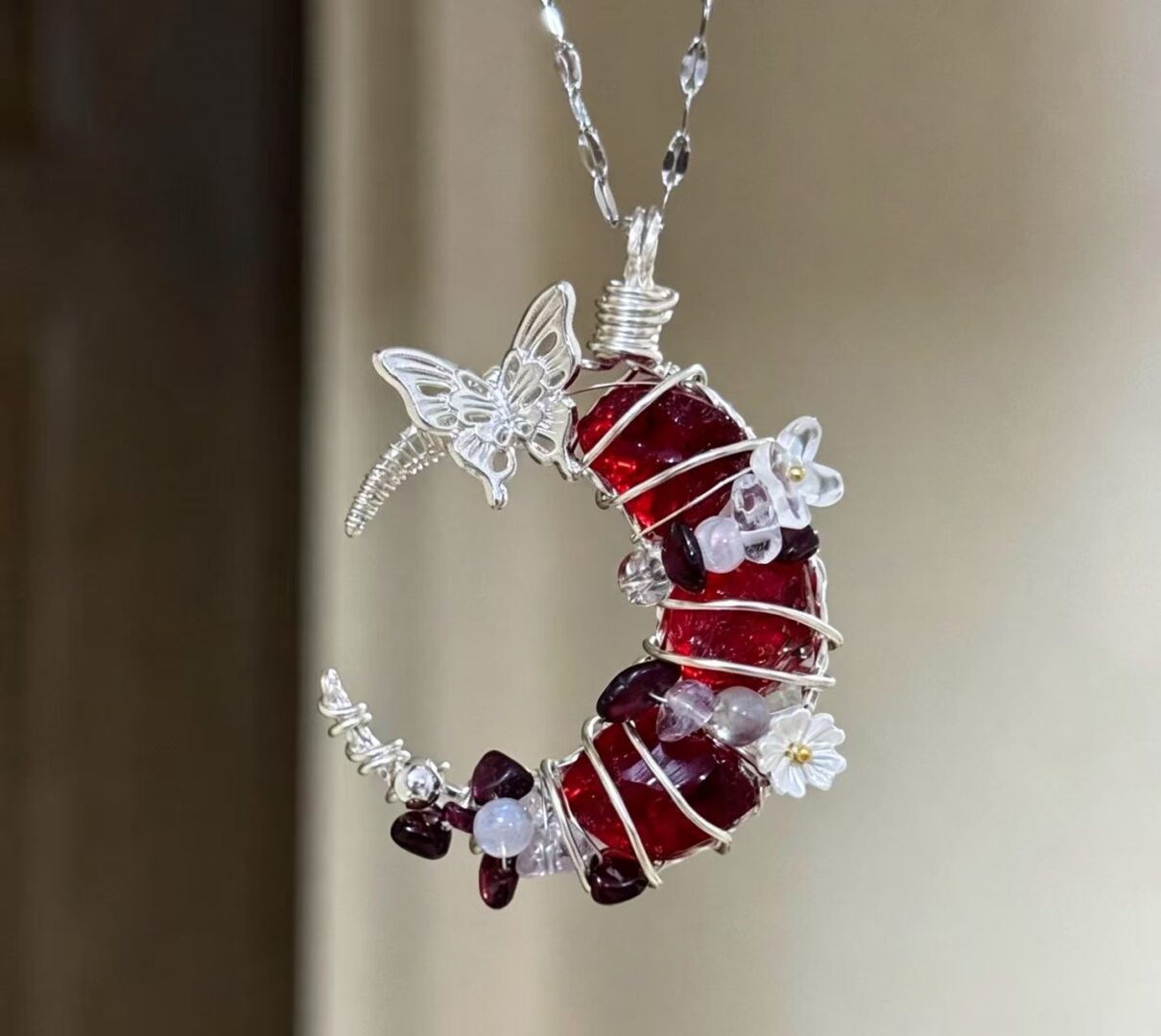 Red Garnet Crescent Moon Pendant: The Fire Element Amulet For Passion, Vitality & Magnetic Charm